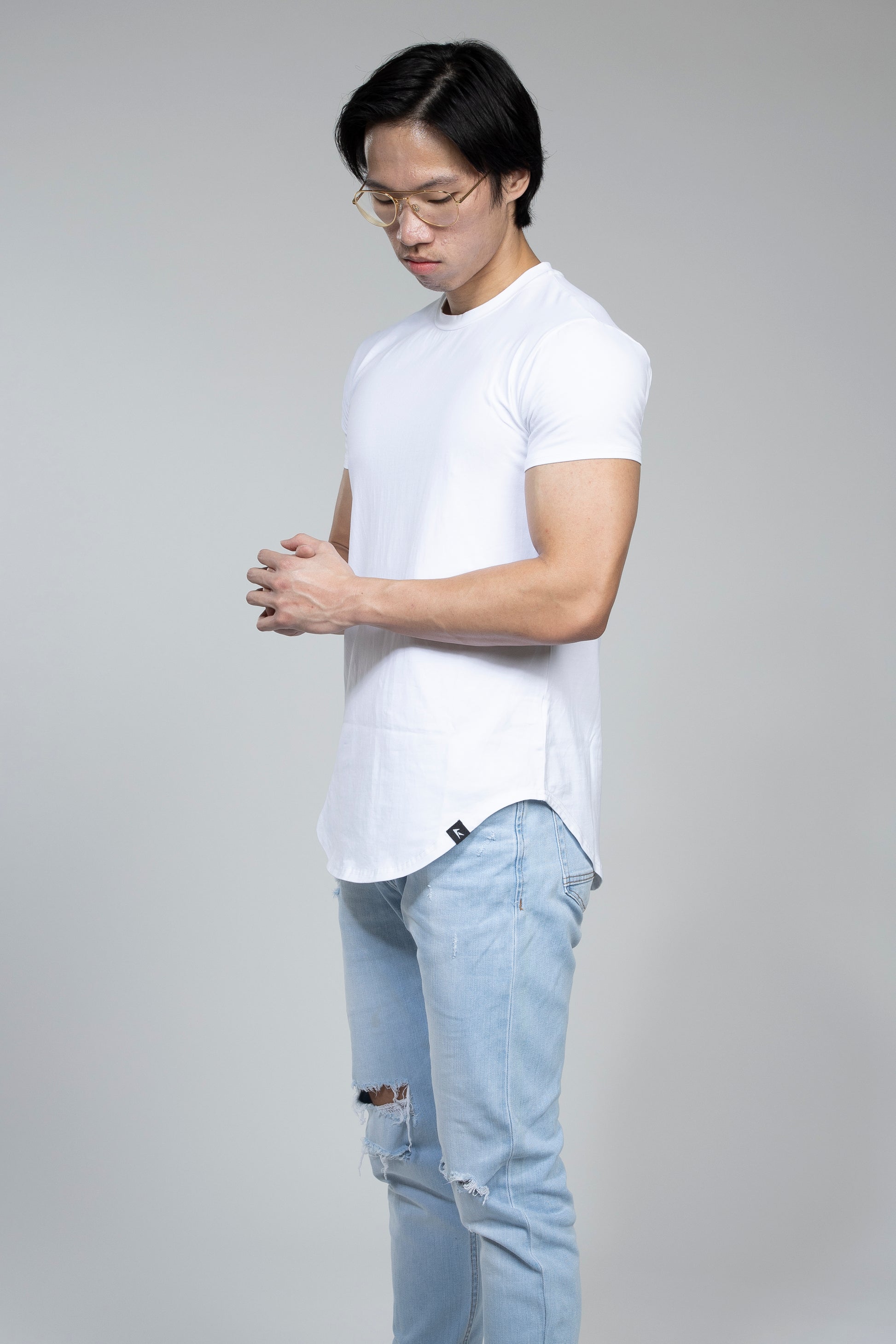 The tee that makes you feel confident and comfortable at the same time. The sleeve that perfectly wraps around your arms paired with an elongated scoop bottom to flaunt your upper body makes it the perfect shirt to have in your closet.